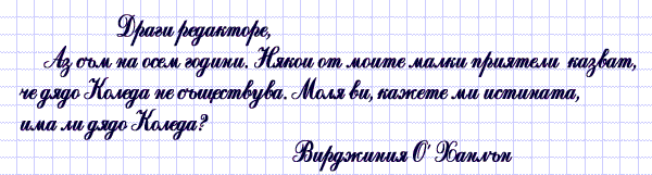 Ето оригиналният текст на писмото на Вирджиния О' Ханлън: