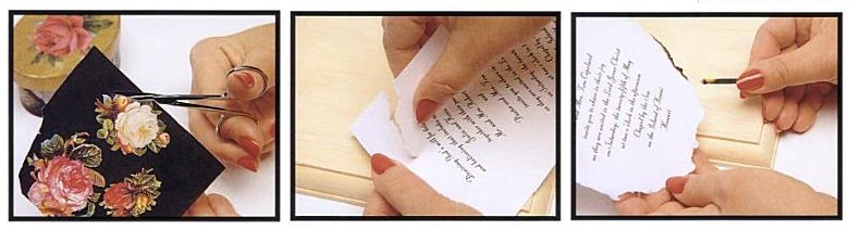 Един съвет от нас: Харесайте си мотив от салфетка например. Трябва да изрежем определен орнамент – да речем цвете. Но, ако това цвете има и фон, хубаво е да боядисате повърхноста, върху която ще лепите с цвят, подобен на този фон, така няма да се забелязват резките линии. Но ако искате нещо различно, творете на воля.